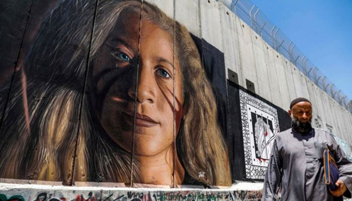 احد تمیمی کی رہائی سے ایک روز قبل یروشلم کو بیت اللحم سے جدا کرنے والی دیوار پر بہادر فلسطینی لڑکی کا 13 فٹ بڑا چہرے والا پوسٹر بنانے پر دو اطالوی باشندوں کو بھی گرفتار کیا گیا۔