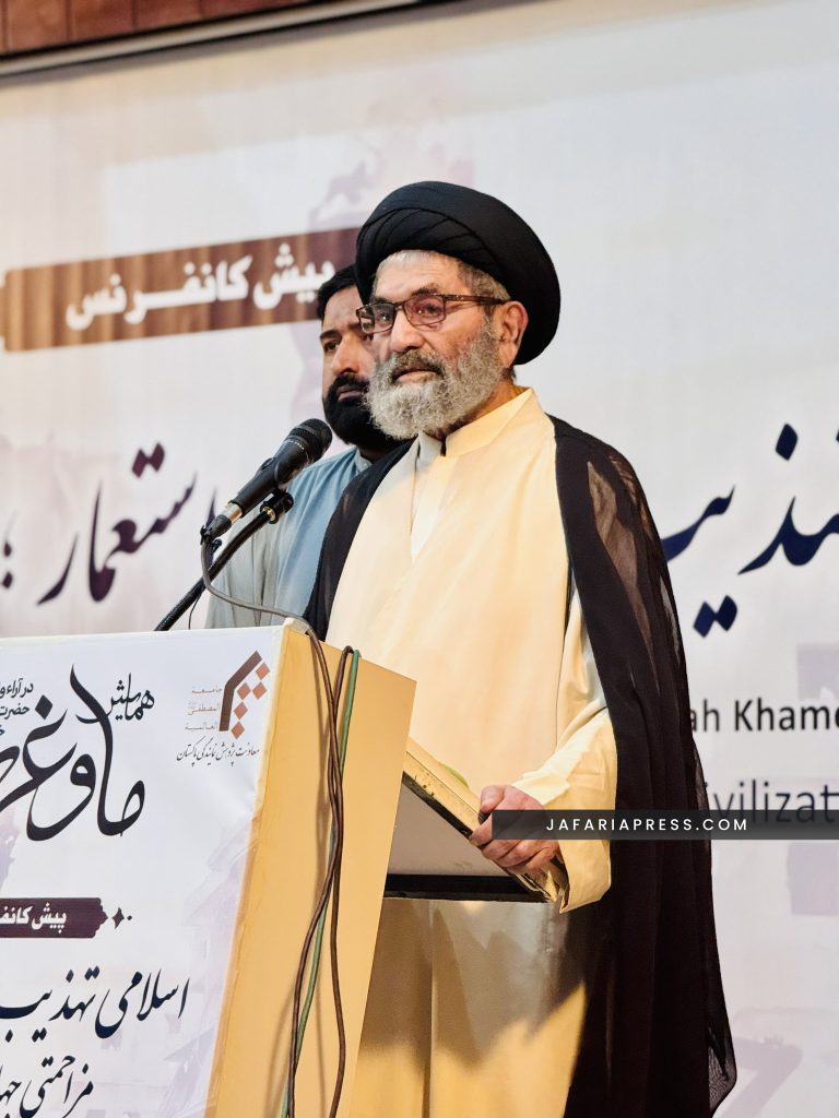 ان خیالات کا اظہار انہوں نے جامع الکوثر اسلام آباد میں المصطفیٰ انٹرنیشنل یونیورسٹی کی میزبانی میں” ہم اور مغرب حضرت آیت ا۔۔۔ خامنہ ای کی آراءکی روشنی میں“ کے عنوان سے کانفرنس سے بطور مہمان خصوصی خطاب کرتے ہوئے کیا ۔ قائد ملت جعفریہ پاکستان علامہ سید ساجد علی نقوی نے کہاکہ حضرت آیت ا۔۔ خامنہ ای کے افکار و آراءکا منبع قرآن پاک ہے ،قرآن کریم پوری انسانیت کےلئے مشعل راہ ہے 14 سو سال پہلے قرآن پاک کے آفاقی پیغام نے سامراج اور استکبار کی جانب متوجہ کیا ،نشانیاں بتائیں کہ جو زمین میں فسادپھیلانے والا، تہذیبوں و ثقافتوں کو مسمار کرنیوالا اور انسانیت کو قتل کرنے والا ہے اسی استکبار کے مختلف روپ امپیریئل ازم یا کالونیل ازم ہیں ،آج مشرق وسطیٰ خصوصاً فلسطین میں جو صورتحال ہے وہ اسی کاکیا دھرا ہے ،1948ءسے قبل بھی ارض فلسطین میں یہودی آباد تھے، چھ بستیاں تھیں مگر صہیونی نہیں تھے جنہیں یہاں سازشوں کے ذریعے بسایاگیا ایک صدی قبل اس ناجائز ، قابض ،دہشت گرد ریاست کا تصور بھی نہیں تھا جوبقول بابائے قوم مشرق وسطیٰ میں خنجر کی مانند پیوست ہے ، اسی استکبار کا جال بچھایا ہوا ہے کہ آج ظالم و مظلوم میں فرق ختم کردیاگیا ،قاتل و مقتول کا فرق ختم کردیاگیا اور ایک نام نہاد معاہدہ جس کی دوشقوں پر عملدرآمد بھی نہ ہوپارہا پر شادیانے بجائے جارہے ہیں، ابتدائی لمحات کے بعد پھر فلسطینیوں پر وہی ظلم کی رات طاری کی جارہی ہے، امداد کونصف کرتے ہوئے رفح کراسنگ بارڈر بندش کی پھر دھمکیاں ،تو ایسی صورت میں اس ناجائز، دہشت گرد صہیونی ریاست اور اس کے پشت پناہ و اصل مرتکب سامراج و استعمار سے کسی خیر کی توقع کیسے رکھی جاسکتی ہے۔انہوں نے امت مسلمہ کو متوجہ کرتے ہوئے کہاکہ قرآن پاک کے آفاقی پیغام سے تحقیقی انداز میں استفادہ کیا جائے تو انسانیت اور امت مسلمہ امپیئریل ازم ، کالونیل ازم سے دوری اختیار کرسکتی ہے اور یہی انسانیت خصوصاً امہ کےلئے نکتہ وحدت ہوگا۔کانفرنس میں المصطفیٰ انٹرنیشنل یونیورسٹی کے ڈاکٹر کاظم سلیم، سابق سیکرٹری خارجہ شمشاداحمد خان شریک ہوئے جبکہ قائد اعظم یونیورسٹی کے ڈاکٹر قندیل عباس، این ڈی یو شعبہ تحقیق کے سابق سربراہ پروفیسر ڈاکٹر محمد خان ، مسلم یوتھ یونیورسٹی کے ڈاکٹر پروفیسر رازق نے اپنے مقالہ جات پیش کئے۔