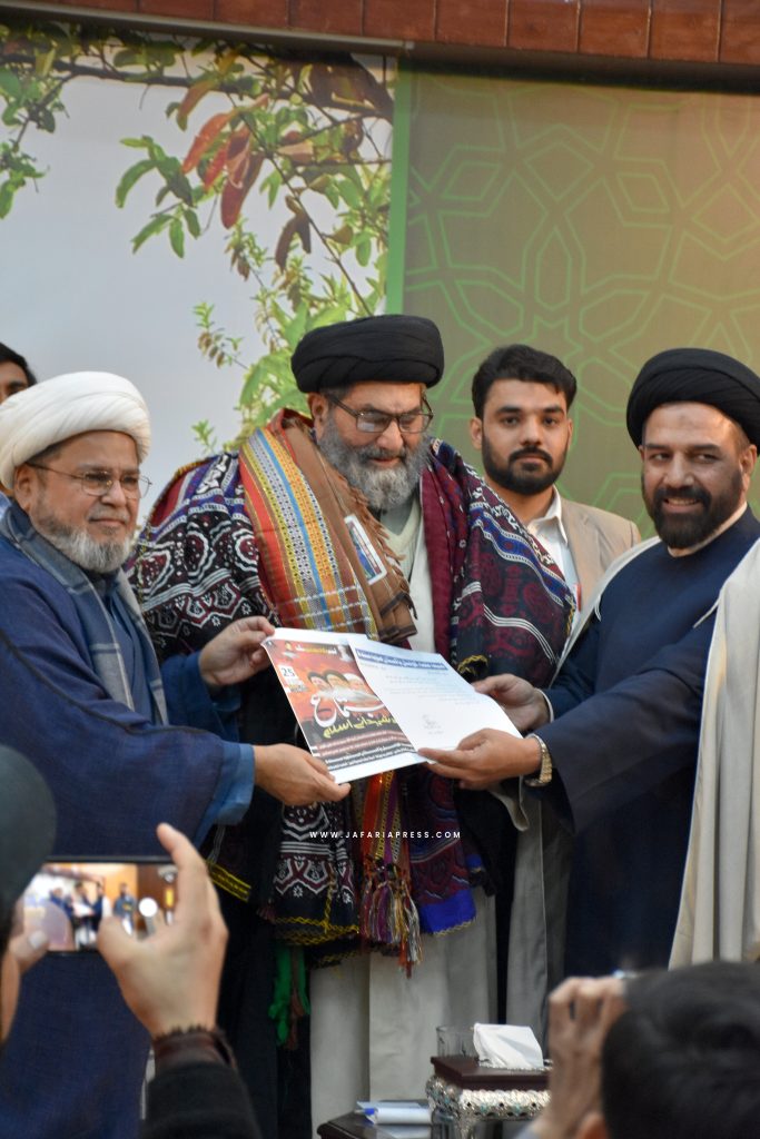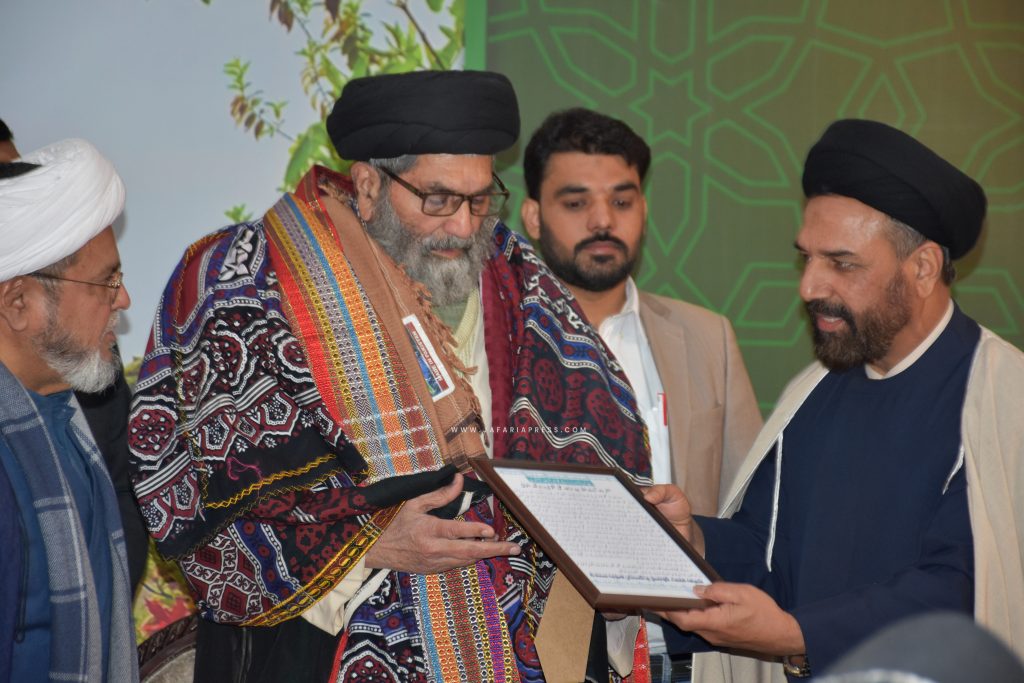 اسی موقع پر صوبہ سندھ کی جانب سے مرکزی سیکرٹری جنرل علامہ ڈاکٹر شبیر حسن میثمی کو ان کی مسلسل تنظیمی فعالیت، سماجی و سیاسی جدوجہد اور رفاہِ عامہ کے لیے بے لوث خدمات کے اعتراف میں یادگاری سووینئر اور سندھی ثقافت کی علامت اجرک پیش کی گئی۔